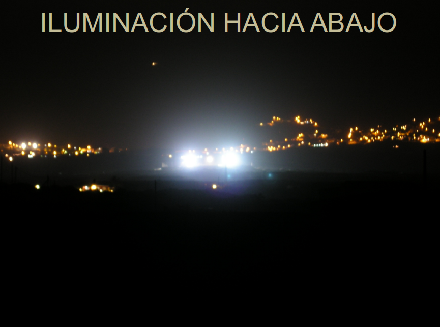 La solución es tan fácil como un diseño que ilumine sólo el terreno de juego, no las gradas, ni las casas adyacentes, ni el paisaje a su alrededor. Vemos en la imagen la forma correcta de cubrir las luminarias para dirigir el haz de luz donde debe ir con un evidente ahorro de energía y un necesario respeto por el entorno.