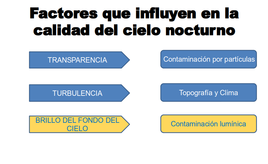 Como aficionados a la Astronomía nos interesa que las condiciones nocturnas de observación sean lo más adecuadas posibles. En el caso de la isla de El Hierro, salvo episodios con calima, el factor transparencia está asegurado porque estamos lejos de los lugares generadores de contaminación por partículas, fundamentalmente industrias y tráfico intenso de vehículos. La misma isla carece de capacidad contaminante en ese sentido, ya que su parque de vehículos es reducido y la única industria contaminante es la central eléctrica de Llanos Blancos con escasa repercusión en nuestra atmósfera. La turbulencia del aire es una propiedad muy local, pero hay lugares en la isla con unos valores aceptables para la observación astronómica.