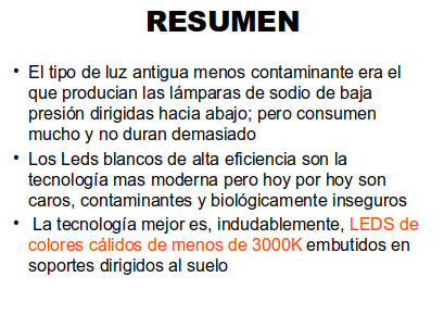 Con esta charla intentaremos aclarar cual es el efecto real de este tipo de iluminación pública y proponer soluciones al problema.
