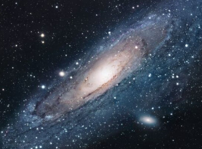 Si salimos de nuestra galaxia -la Via Láctea- encontraremos un Universo repleto de.....estrellas. Las estrellas se agrupan en galaxias situadas a enormes distancias unas de otras y en perpetuo movimiento. En la imagen se puede ver el aspecto de una de las más cercanas: la galaxia de Andrómeda. Parece que nuestra Via Láctea podria tener una forma parecida, si la pudiésemos ver desde fuera.