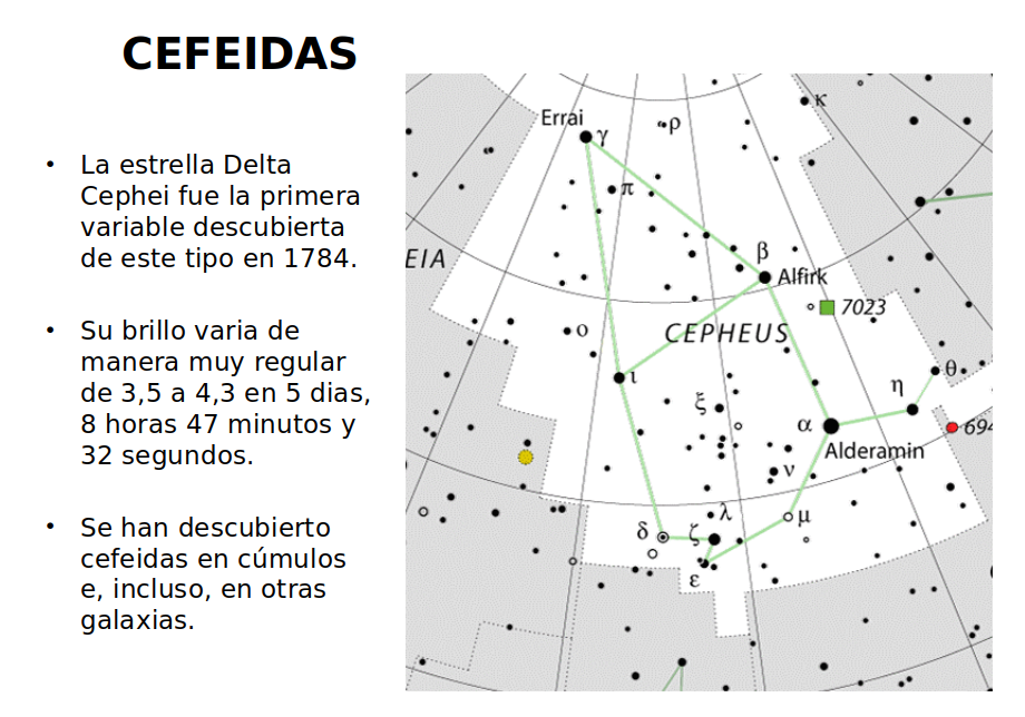 La constelación de Cefeo no es tan fácil de encontrar en el cielo nocturno como Lira y el Cisne. No muy lejos de la estrella Polar sus estrellas son poco brillantes y es preciso conocer los alrededores para verla con claridad. Pero hay una razón para nombrarla en esta lista, porque una de sus estrellas es Delta Cephei.
