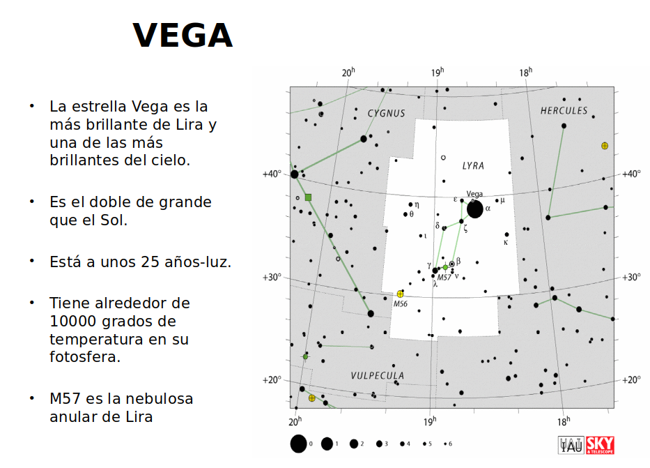 Vega es una estrella especialmente brillante de la constelacion Lira que nos puede servir para introducir un esquema básico del interior de una estrella. Es una estrella más grande que el Sol y está relativamente cerca. Su color azulado indica que su temperatura en su capa exterior es mayor que la del Sol, por tanto es una estrella joven con gran actividad en su interior.