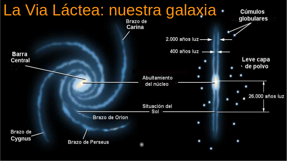Nuestro lugar está en un brazo secundario, a unos 26000 años luz del centro de la galaxia.